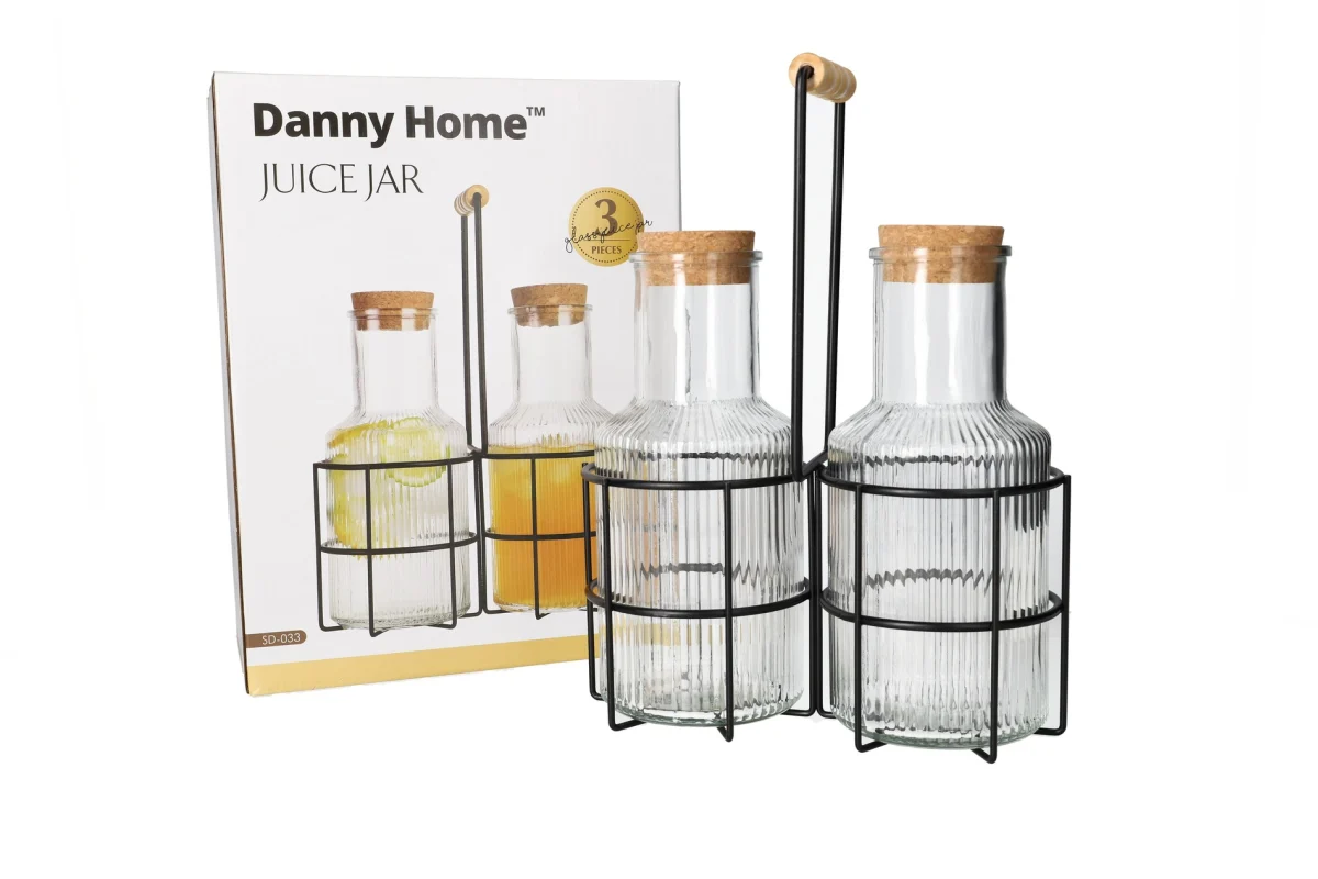 Dany Home Glass Juice Jar with Stand, 3 Pieces, SD-033 – Multicolor