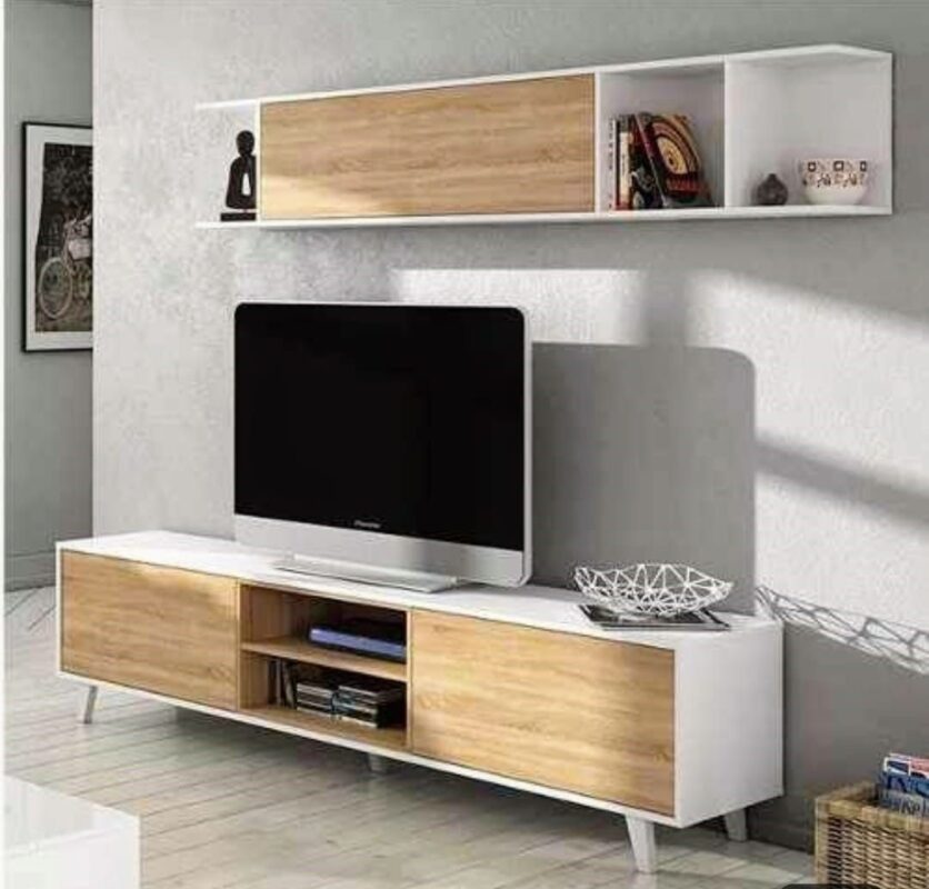 دوماني ترابيزة تلفزيون، 120×40×40 سم، خشب أم دي أف، T0105 – ابيض بنى