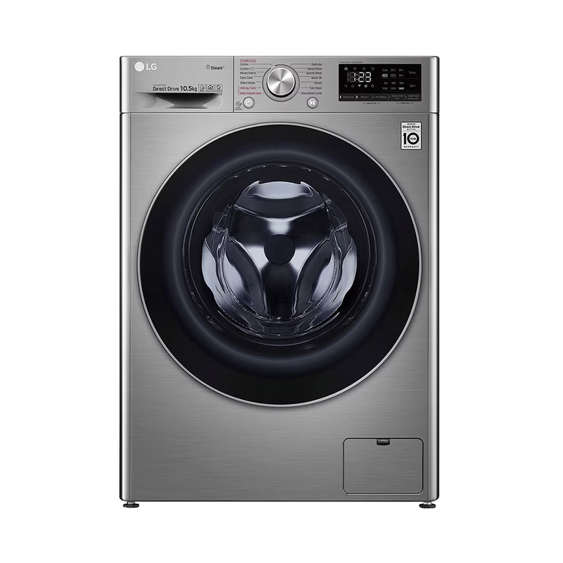 إل جي غسالة أتوماتيك، 10.5 كيلو، 1400 لفة/دقيقة، بخار، F4V5RYP2T – فضي