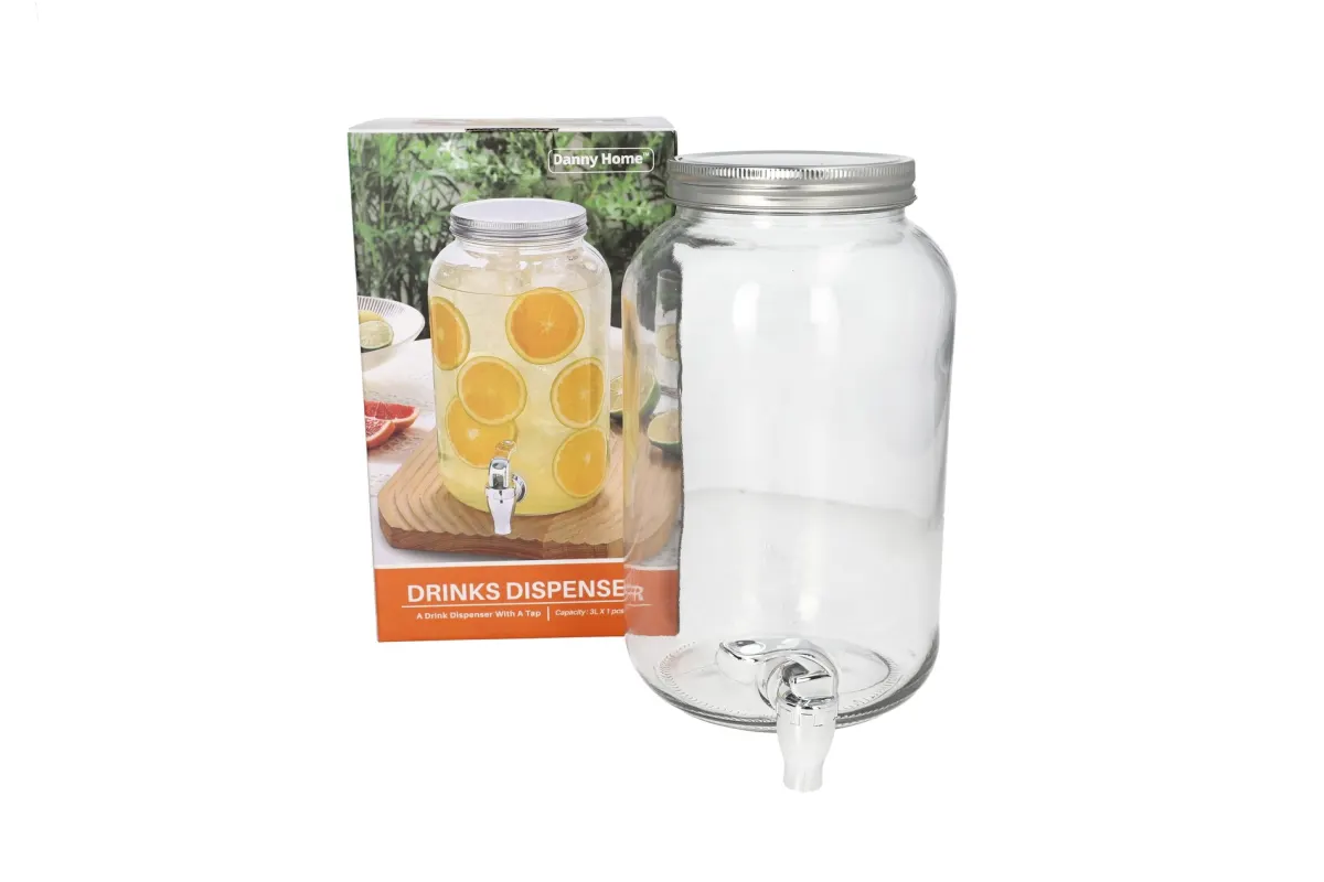 Dany Home Glass Beverage Dispenser with Tap, 3L, WTJ19 – Clear